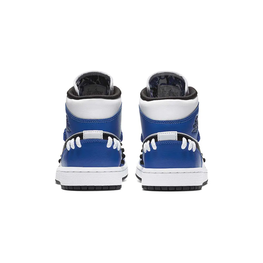 The women’s Air Jordan 1 Mid ‘Sisterhood’ updates the classic silhouette with unique detailing on an all-leather build. A familiar white, black and royal blue color scheme is executed on the upper, accented with faux stitching made up of heavy woven cords along the quarter panel and heel. The mid-top rides on a standard Air Jordan 1 rubber cupsole, featuring encapsulated Nike Air cushioning in the heel for a comfortable ride.