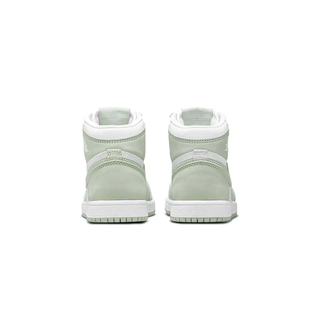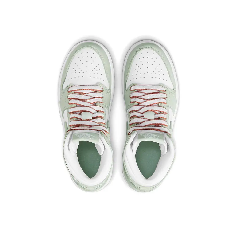The women’s Air Jordan 1 Retro High Og ‘Seafoam’ delivers a subtle two-tone colorway of the 1985 sneaker that started it all. The all-leather upper features a crisp white base with contrasting overlays in a soft green finish. The pastel hue is repeated on the sneaker’s branding elements, which include the signature Swoosh and Nike Air tongue tag. Contrasting color arrives via Healing Orange trim on the flat woven laces. The high-top is anchored by a durable rubber cupsole with encapsulated Air sole cushioning in the heel.