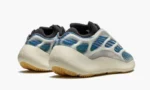 knitted upper that contrast the white fabric and the semi-translucent, glow-in-the-dark RPU overlays. Like all 700 V3s, the “Kyanite” features an EVA foam midsole that replaces the Boost cushioned version found on early iterations of the