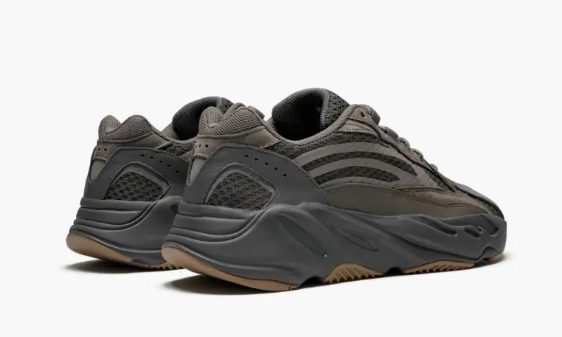 The Yeezys Boost 700 V2 “Geode” is the second release of the V2 iteration of Kanye West’s famous chunky sneaker. The “Geode” Yeezys features an earthy color palette with dark brown and grey hues on the mesh, leather, and suede construction. The Three Stripe branding is incorporated abstractly into the design with waves of reflective material across the mesh paneling. The laces also feature reflective detailing. The colorway is finished with a gum rubber outsole to complement the tones of the upper. The Yeezys Boost 700 V2 “Geode” released in March 2019.