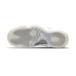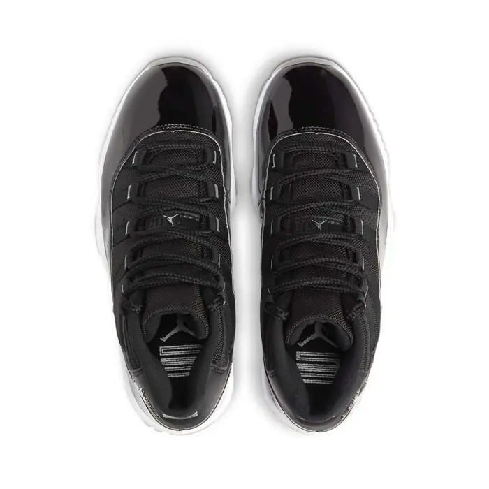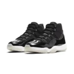 The Air Jordan 11 GS “Jubilee” is the youth sizing of the colorway that salutes the 25-year anniversary of Michael Jordan’s eleventh signature shoe. The “Jubilee” was released by Jordan Brand in Winter 2020 and is inspired by a concept sketched by Tinker Hatfield during his designing of the Air Jordan 11 in the mid ’90s. Elements of both the “Concord” and “Space Jam” colorways are combined into one on the “Jubilee” including a black patent leather mudguard, which is also culled from the “Bred” design. The word “Jordan” is spelled out in metallic silver text along the side of the eyelets in reference to the original sketch of the shoe by Hatfield. A silver Jumpman emblem can be found on the collar, and the traditional “23” on the back of the heel is also given the same silver treatment. Release date: December 12, 2020.